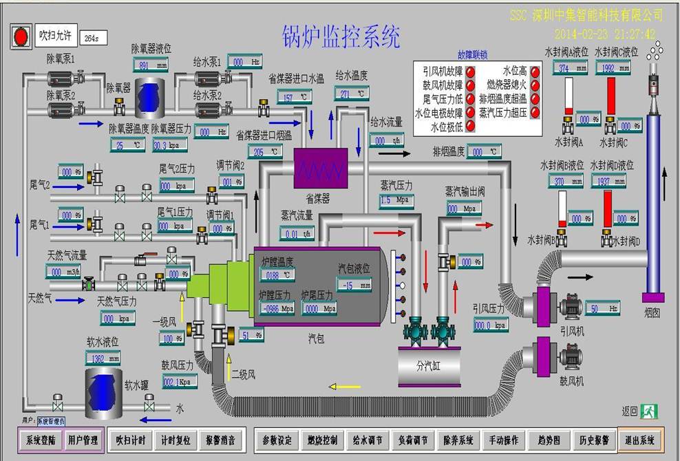 2).自动检测及记录设备的工艺变量、设备状态等数据,实时显示工艺流程及过程数据,自动生成报表、记录报警;