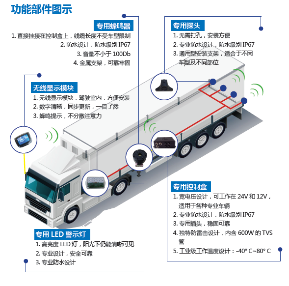 特别适用于需要停泊货台的物流车、长途车、危险品车等货运车辆。